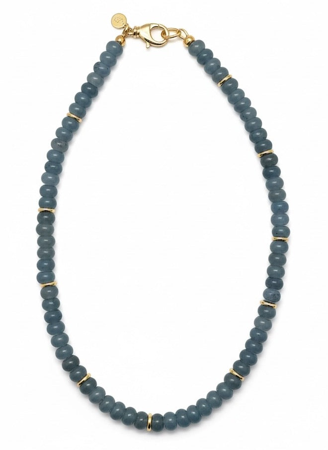 Elevate your everyday look with this stunning hand beaded necklace, accented by delicate gold spacers for a refined touch. Designed to worn alone or personalized, this piece features a clasp that allows you to easily add your favorite charm. Mix, match, and make it your own-a perfect foundation for a look thats uniquely you.